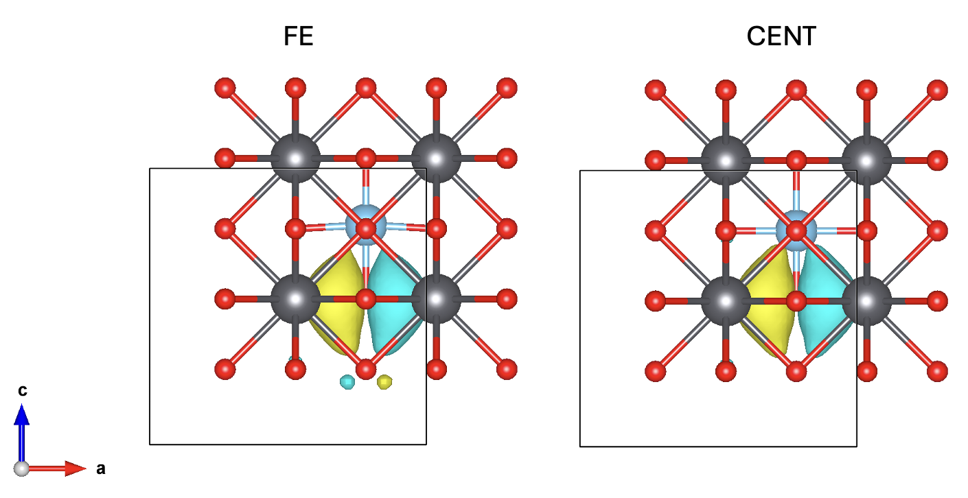 First of all, let’s take a look at the Wannier centres of both centrosymmetric and Ti-displaced PTO: